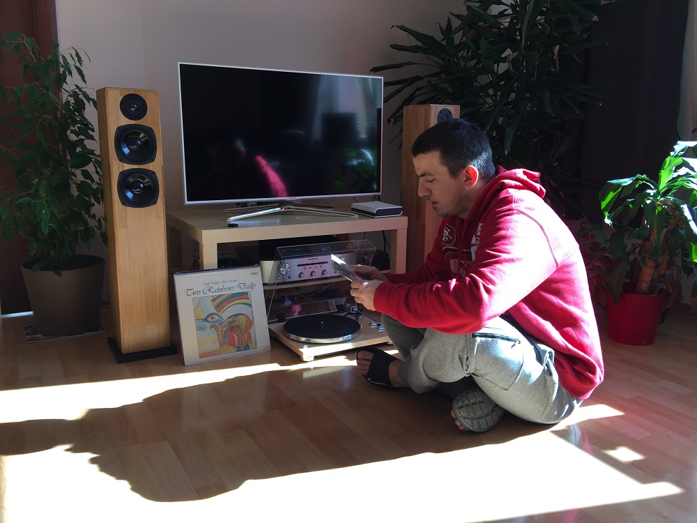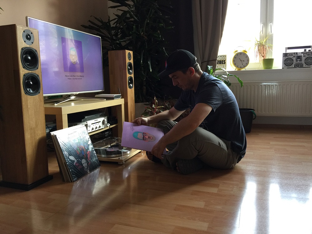 V jednom pokoji mám takovou pracovnu, kde je počítač, vedle mám stůl s dvěma Technics 1210 s mixem od Rane a aktivní bedny. Tam vznikají moje podcasty, mixy a je to takové místo, kde si člověk pustí vinyl a nemá z toho takový požitek. Proto jsem se rozhodl, že do obývacího pokoje si pořídím další gramofon, zesilovač a hifi bedny od český firmy Xavian. Tam je to pro mě takový, že si udělám kávu a poslouchám a mám to jakoby místo televize. Ráno si nepustim zprávy, ale nějakou desku. Při vaření si nepustim Prostřeno, ale gramofon atd.